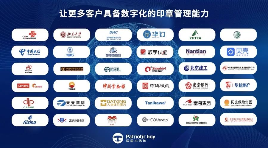 伴隨著市場需求的持續激增,愛國小男孩作出了快速積極的響應,經過對市場的長期驗證與深度探索,已經形成了對政府單位、行政機關、集團企業、金融保險、醫療、教育、物流運輸等領域及行業的印章管理解決方案,并取得了顯著成果。