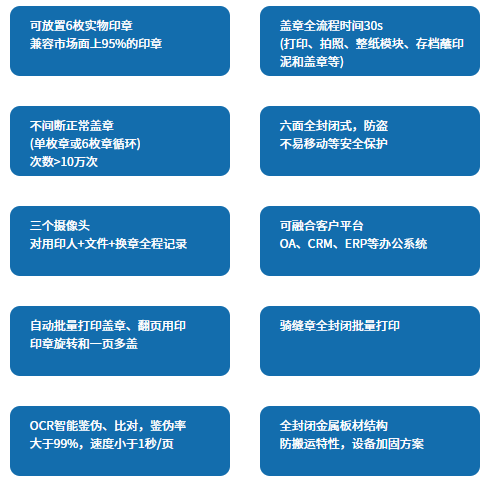 集掃描、打印、審批、蓋章、鑒偽多功能于一體,立足于安全管控、操作簡便,快速響應等基本要求,通過線上審批的方式,解放人力,快速、高效的完成自助、自動用印。