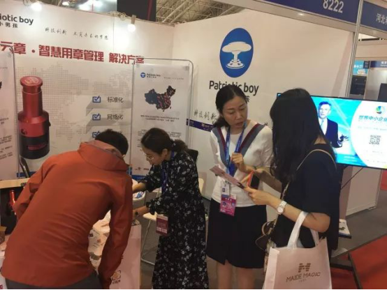 北京愛國小男孩科技有限公司作為國家級高新技術(shù)企業(yè),參加了此次科博會,在展會現(xiàn)場為各行業(yè)人士集中展現(xiàn)了云章如何杜絕公章被亂用、盜用等給企業(yè)造成損失的違法行為,并為政府或企業(yè)提供了標(biāo)準(zhǔn)化、網(wǎng)絡(luò)化、信息化的用章管理解決方案。