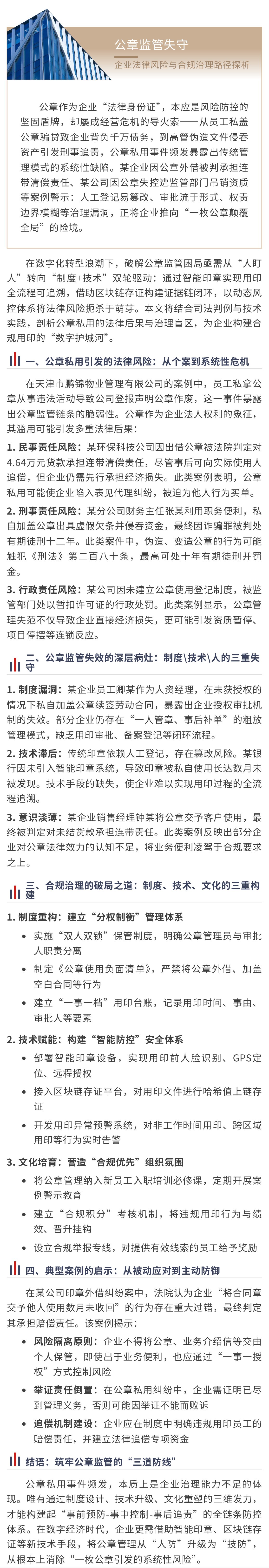 公章監(jiān)管失守:企業(yè)法律風(fēng)險(xiǎn)與合規(guī)治理路徑探析