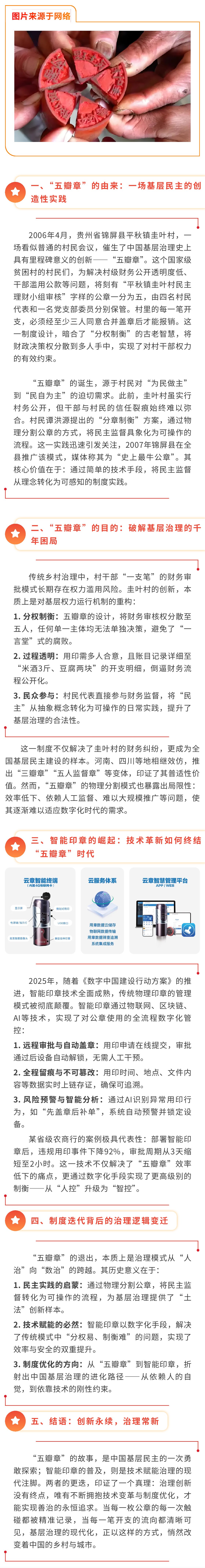 從“五瓣章”到智能印章:基層治理的民主實踐與技術革新