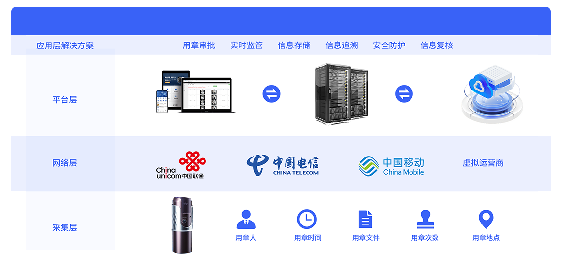 北京愛國小男孩科技瞄準目前政企單位、大型集團公司等用戶的用章管理痛點,運用物聯網技術,推出定制化智慧物聯云章解決方案,運用云平臺的網絡支撐,引入大數據挖掘理念,實現用章管理一體化/信息化,避免印章私蓋、盜蓋、亂蓋等現象,降低印章管理者風險,智慧物聯云章解決方案可以通過系統對接、私有云部署、定制化開發等多種形式,實現數據融合、功能融合、模塊融合、工作流融合,為用戶定制核實的印章智慧管理系統。